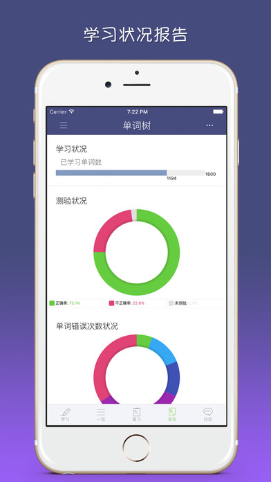 所有的學(xué)習(xí)和測試過程都有記錄并用圖表展示,讓你對自己的學(xué)習(xí)進度一目了然!