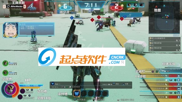 框體等級:通過擊破貨柜和敵人后,拾取掉落的紅色強化粒子來提升。每升一級除了提升機體參數(shù)外還能解鎖一個EX技能,不過框體等級不會累積到下一場戰(zhàn)斗中。所以每次開戰(zhàn)時,玩家的第一要務(wù)就是先去打貨柜升級,以便解鎖EX技能。