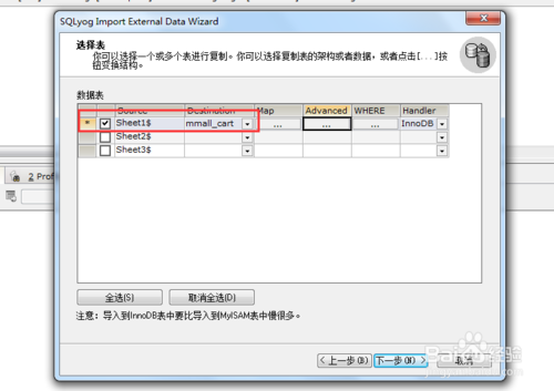選好sheet表和所需要導入的數(shù)據(jù)庫表后,點擊 下一步
