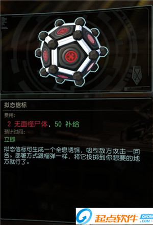 簡(jiǎn)介:擬態(tài)信標(biāo)是一個(gè)神奇的東西,首先只要50補(bǔ)給,只要研究解剖無面者科技就可以制造,而且召喚出來的擬態(tài)信標(biāo)誘餌有固定12血量,并且99%吸引AI單位仇恨,還自帶神奇的防御力?;局灰獊G出信標(biāo)AI單位就會(huì)不顧一切的沖向信標(biāo),長(zhǎng)腳不站,蛇不噴毒灰人不靈能,簡(jiǎn)直是BUG一般的存在。當(dāng)然也有一個(gè)神奇的單位在特殊情況下不受影響——變種人強(qiáng)襲槍兵,此單位對(duì)于滿血單位異常執(zhí)著到令人發(fā)指地步。