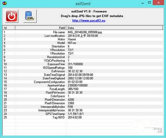 exif2xml(exif轉(zhuǎn)xml工具) v1.0 免費(fèi)版 軟件大小:208KB