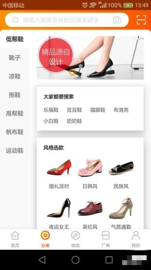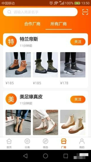 伙拼云商app是一家專為女鞋廠商和賣家搭建的撮合交易平臺。伙拼平臺除了對廠商的款式進(jìn)行展示之外,還將采用深度驗廠的方式,對廠家的開款風(fēng)格、開發(fā)實力、生產(chǎn)實力、售后服務(wù)等多維度呈現(xiàn)。讓賣家能夠更好的選擇適合自己風(fēng)格、出貨穩(wěn)定的服務(wù)商,從而更好的實現(xiàn)交易。