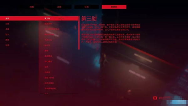 好在世界觀塑造之成功,蓋過(guò)了劇情的單薄。游戲中各個(gè)角色塑造十分精彩,除了對(duì)話,你還可以進(jìn)入資料選單進(jìn)行詳細(xì)查看,這里有包括你遇見(jiàn)的人物、武器、技能等的背景介紹,確實(shí)十分用心。本人就對(duì)其中一名BOSS特別欣賞——破道惡侍。名字帥吧?游戲整體的翻譯質(zhì)量可見(jiàn)一斑。破道惡侍是將嶺谷市第三胎組織起來(lái)的地下幫派領(lǐng)袖,視槍械為弱者的玩具,于是使用一把武士刀進(jìn)行戰(zhàn)斗。像這樣的BOSS還有很多,不乏個(gè)性鮮明、作戰(zhàn)特別的人物,這也是游戲的魅力所在。