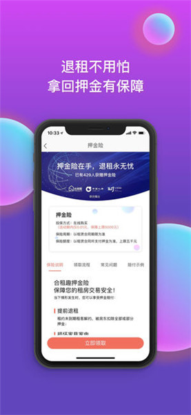 合租趣app能在房主和租客達成一致后線上簽約,并且可以簽訂押金保險,平臺保障租客與房東的共同權益。保押金,讓你更放心。