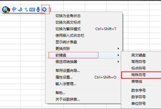 4.當符號敲完以后,點擊谷歌拼音輸入法的鍵盤符號,如圖所示
