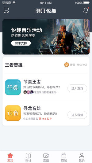 悅趣音樂app致力于打造國際一線的薩克斯教育品牌,讓學習、教授、演奏、經營薩克斯成為一種樂趣。悅趣音樂中心創(chuàng)立于2014年,由薩克斯中國網悅趣音樂團隊管理運營。悅趣課程的研發(fā)團隊由國內一線薩克斯演奏家、海歸精英、音樂學院教授與多位國際著名演奏家與教育家共同組成,并由薩克斯中國網教研顧問章嘯路副教授編寫《悅趣薩克斯"輕松學"系統教程》。