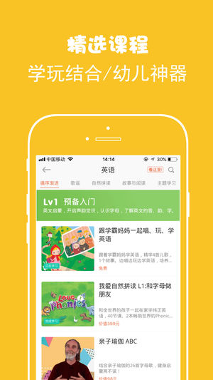 1、課程多:英語童謠、Phonics、中英文故事、寶寶情商訓練系列、家長成長系列、詩歌國語、藝術(shù)啟蒙等等,統(tǒng)統(tǒng)可以在家玩、在家學。