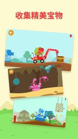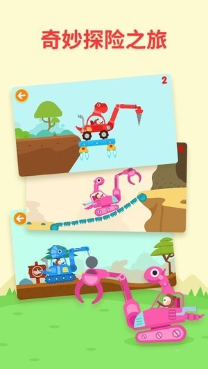 【精心制作】多多恐龍車游戲關(guān)卡豐富,三款為小朋友精心打造的恐龍機械車都各具特色;
