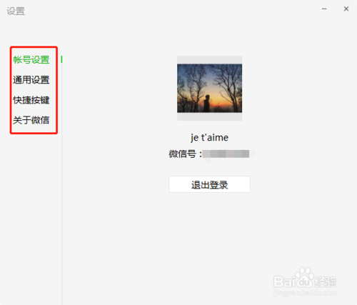 3、然后點擊設(shè)置按鈕,彈出設(shè)置頁面,此頁面包含微信電腦版的所有設(shè)置項。