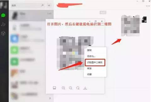 有的人以為只有手機微信才能識別二維碼,其實電腦版已經(jīng)可以識別二維碼了。如何操作呢,其實很簡單,點開圖片,右鍵,識別二維碼;