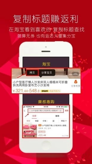 3、功能強(qiáng)大,為各大網(wǎng)購(gòu)開通接入口,集合所有網(wǎng)購(gòu)內(nèi)部?jī)?yōu)惠券供大家使用,再享受商品專項(xiàng)回報(bào)功能。例:復(fù)制淘寶商品標(biāo)題,再到廉都惠購(gòu)下單購(gòu)買,就可獲得相應(yīng)的集分寶獎(jiǎng)勵(lì),同買一件商品,不同的回報(bào)。
