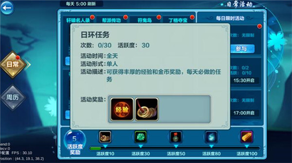 日環(huán)任務可以做30輪,每輪都會獎勵巨多的經(jīng)驗,花費時間少,收益高,是游戲一上線必須要做的項目之一。