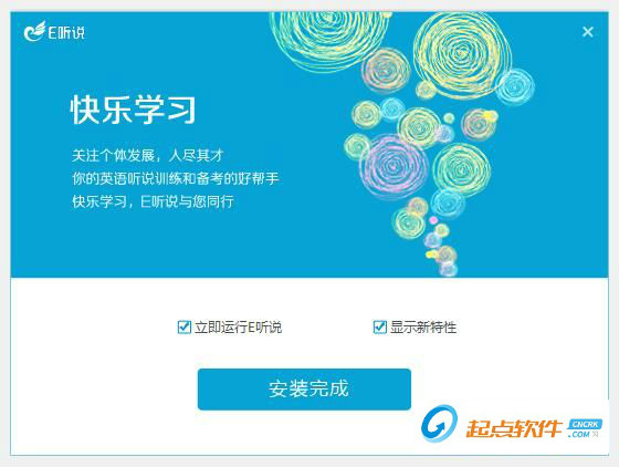 軟件安裝成功,這時(shí)候安裝向?qū)?huì)提示安裝成功。安裝向?qū)嫌袃蓚€(gè)勾選項(xiàng),立即運(yùn)行e聽說和顯示新特性。如果不想執(zhí)行,可以取消勾選。點(diǎn)擊安裝完成就可以完成軟件安裝,關(guān)閉安裝向?qū)А?br />