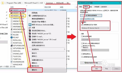 將其中的英文版"MSDEV_en.EXE"執(zhí)行文件,放到VC6根目錄D:\Program Files (x86)\Microsoft Visual Studio\Common\MSDev98\Bin內(nèi),鼠標(biāo)右擊"MSDEV_en.EXE"選擇"屬性"-"兼容性"以xp兼容模式運(yùn)行,即可正常啟動(dòng)VC6程序。設(shè)置后,將要用的執(zhí)行文件右擊“發(fā)送到桌面快捷方式”,以后可直接從桌面啟動(dòng)VC++6.0。