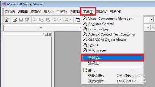 “工具”-“定制”,打開(kāi)定制面板;
