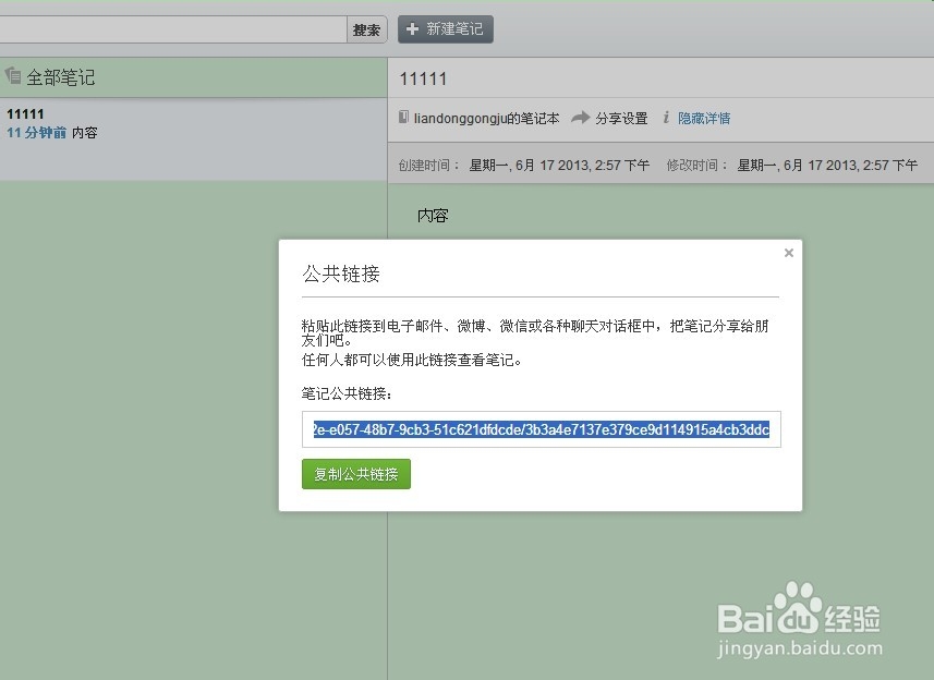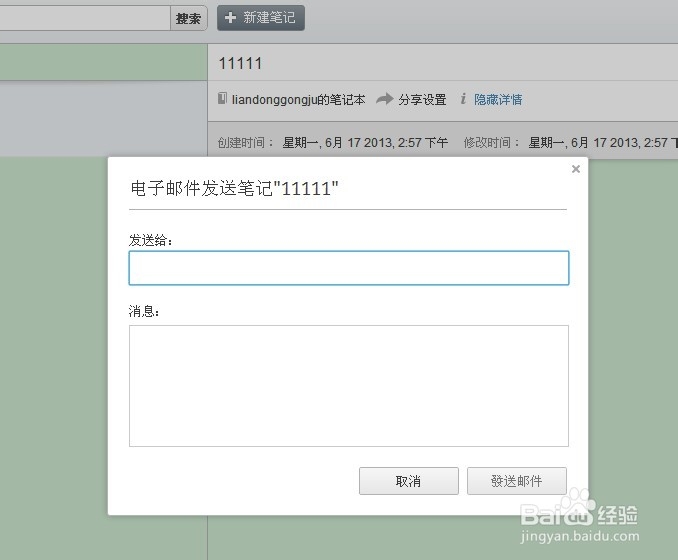 筆記創(chuàng)建好了,如果想讓朋友也可以看到這篇筆記,還可以共享,一種是直接通過郵箱發(fā)送,還有就是共享鏈接