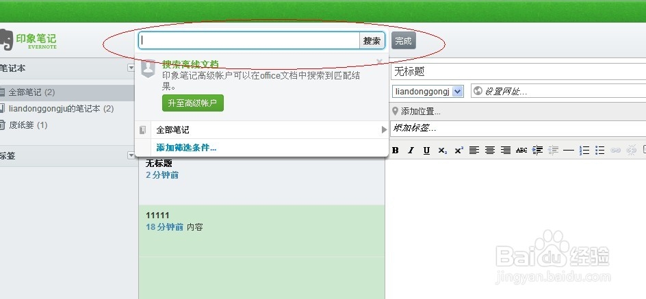印象筆記筆記還提供了搜索功能,只要輸入我們保存的筆記名稱即可搜索到目標(biāo)筆記