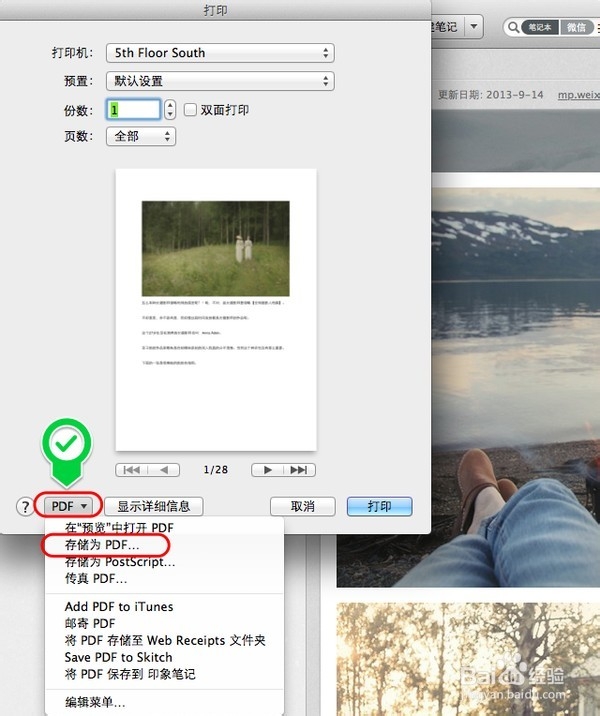 在打印時(shí),點(diǎn)擊頁面左下角“PDF”,選擇“存儲(chǔ)為PDF”