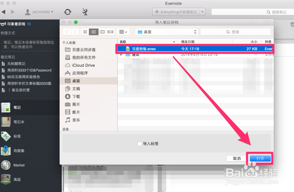 此時(shí)從彈出來的文件選擇器中找到并點(diǎn)擊選擇需要導(dǎo)入的筆記文件,然后找到窗口中的“打開”按鈕進(jìn)入下一步。