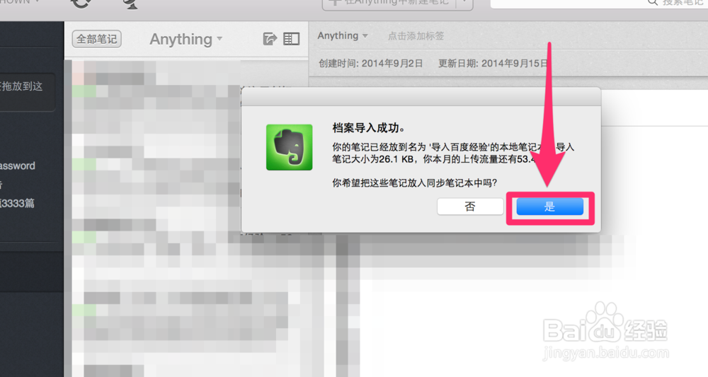 此時(shí)會(huì)提示筆記已經(jīng)導(dǎo)入成功,并會(huì)詢問是否加入新的筆記本,一般選擇“是”就可以了,然后再去新筆記本找到導(dǎo)入的筆記來轉(zhuǎn)移至其他筆記本。