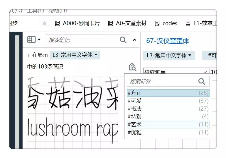 為了方便更快定位,我給字體加了標(biāo)簽,比如 #方正 #可愛 #書法 等。