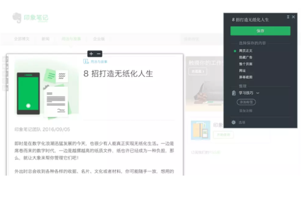 用網(wǎng)頁剪輯插件保存完整的網(wǎng)頁到印象筆記帳戶里。