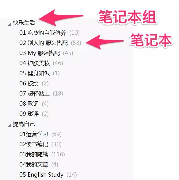 這個(gè)時(shí)候,『筆記本』和『筆記本組』可以幫你管理你的筆記,你的筆記更加井井有條,像這樣: