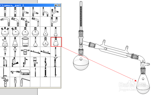 1.現(xiàn)在模版中找到蒸餾燒瓶