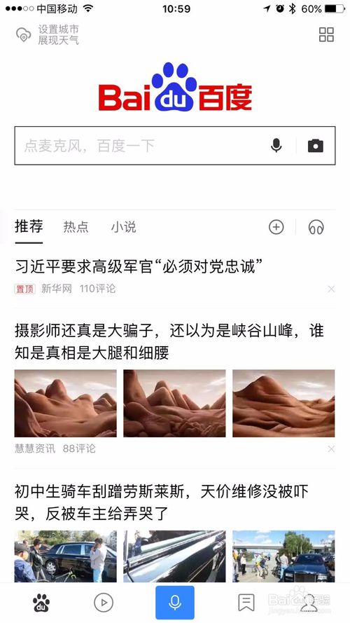 手機百度app無論是新聞、小說、視頻還是地圖以及百度自家的貼吧和文庫,手機百度app搜索一下全都有了。手機百度app手機上貼心搜索工具。