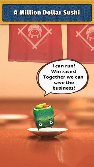 一個壽司的故事是一款好玩的模擬經(jīng)營手游,無人光顧的壽司店即將倒閉,壽司卻能自己銷售自己,告訴老板壽司的做法,吸引顧客,不僅拯救了壽司店,還讓老板成了億萬富翁!