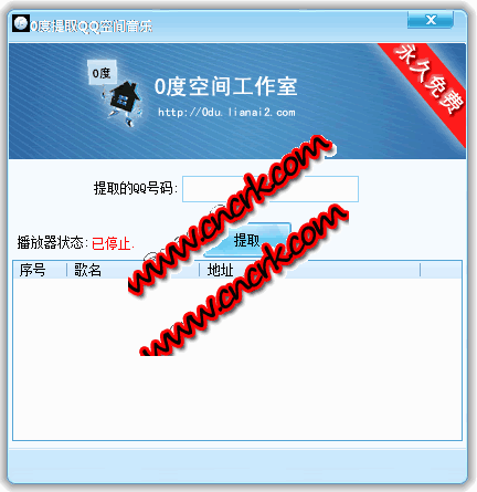 提取QQ空間開場音樂程序 V1.1 簡體中文綠色免費版 很多人聽到別人qq空間的音樂很好聽,卻怎么也找不到是什么歌,戀愛公寓的0度空間開發(fā)出了提取qq空間開場音樂程序讓你輕松提取對方的音樂.