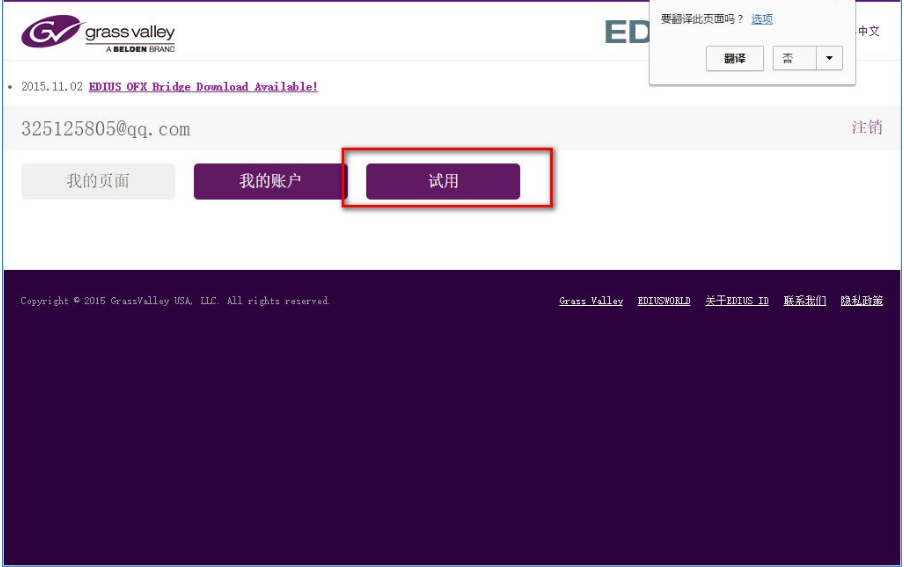1、打開軟件的時(shí)候系統(tǒng)會(huì)彈出以下的提示界面,請(qǐng)大家單擊“Edius ID Web”申請(qǐng)?jiān)囉谩?br />