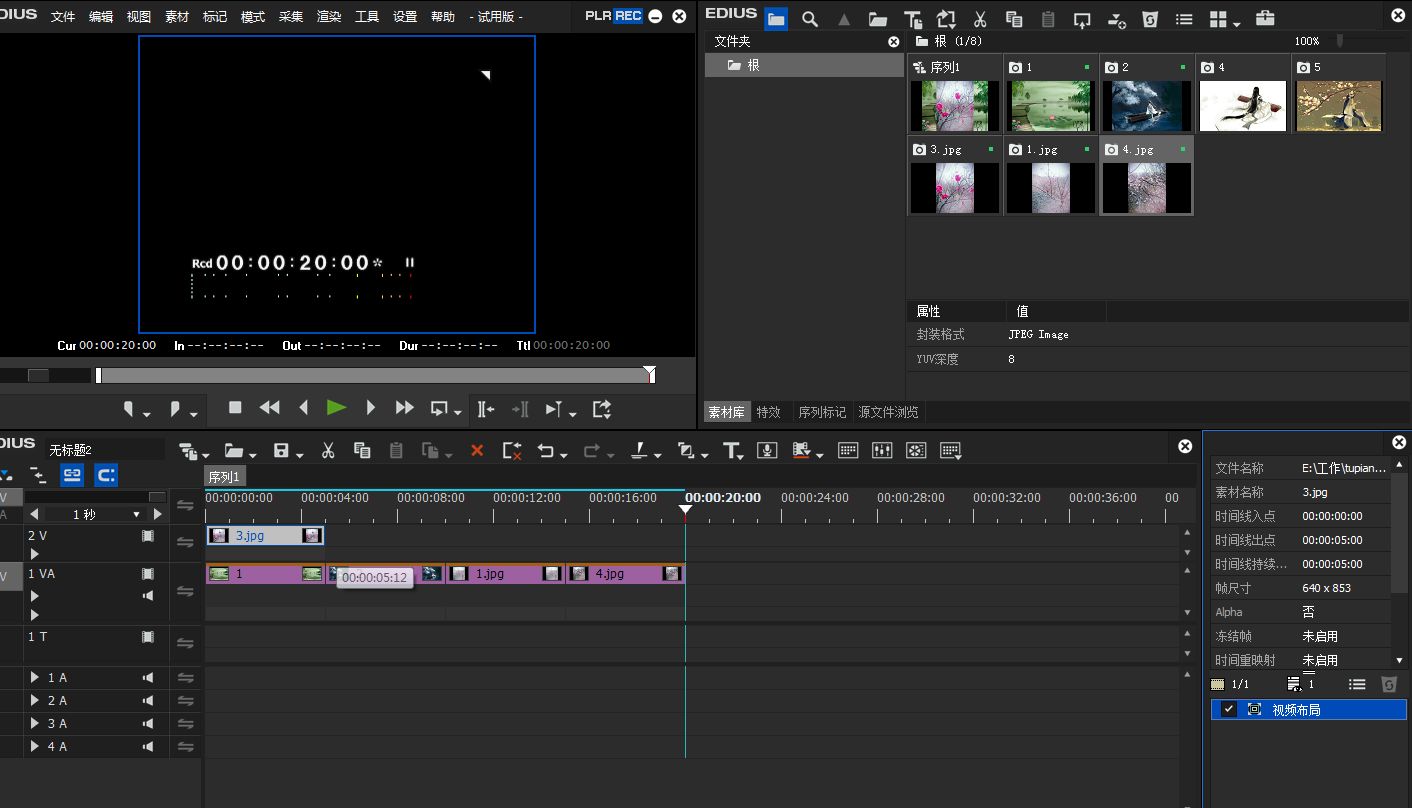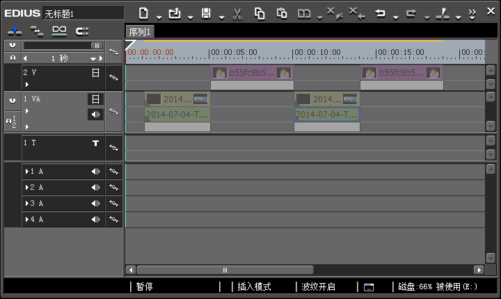 下圖就是視頻全變灰色EDIUS不可編輯的情況: