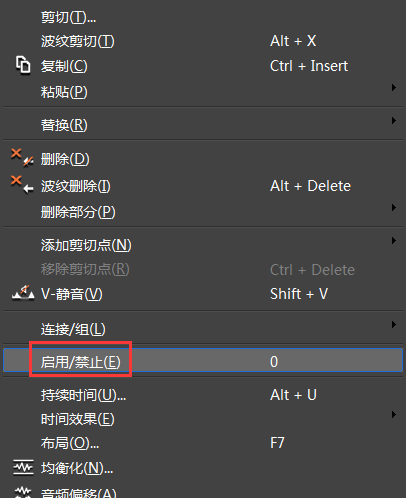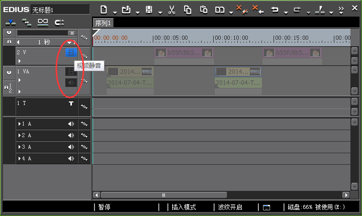 此外,還有一種“偽禁止”狀態(tài),就是視音頻雖然呈灰色狀態(tài),但卻是可編輯的。仔細(xì)觀察是可以發(fā)現(xiàn)區(qū)別的,這種情況是將視音頻靜音給點(diǎn)開了,只要再點(diǎn)擊一次“視音頻靜音”即可使素材重現(xiàn)色彩。