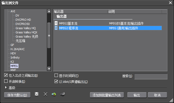 而要解決這樣的囧狀,只需要在“輸出到文件”對(duì)話框中選擇“MPEG程序流”,點(diǎn)擊輸出,再正常選擇必要的選項(xiàng)輸出即可。