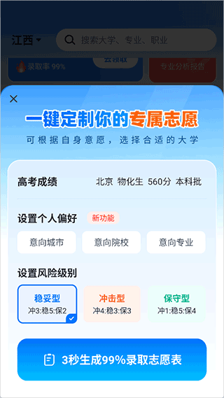 2. 你能夠選擇通過一鍵定制的方式生成錄取志愿表。