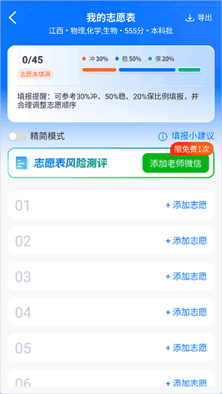 4、填寫過程中,若有需要,可添加專家老師微信,通過視頻獲得指導。填寫完畢后,即可提交并導出。