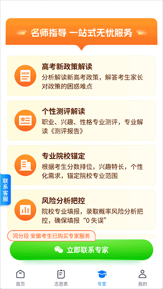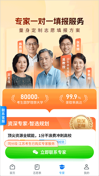 1、用戶可前往專家頁面查看,平臺上有許多多年專業(yè)從事高考志愿填報指導的專家。