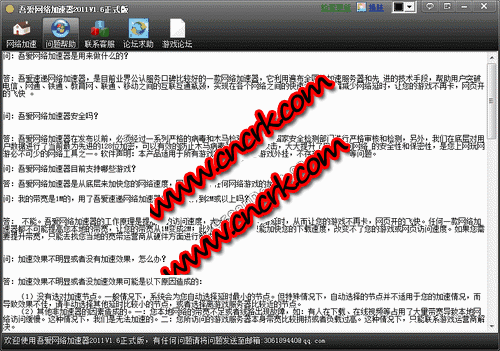 吾愛(ài)網(wǎng)絡(luò)加速器,是目前業(yè)界公認(rèn)服務(wù)口碑比較好的一款網(wǎng)絡(luò)加速器,它利用遍布全國(guó)的加速服務(wù)器和先 進(jìn)的技術(shù)手段,幫助用戶(hù)突破電信、網(wǎng)通、鐵通、教育網(wǎng)、聯(lián)通、移動(dòng)之間的互聯(lián)互通瓶頸,實(shí)現(xiàn)在各個(gè)網(wǎng)絡(luò)之間的快速訪(fǎng)問(wèn),大幅減少網(wǎng)絡(luò)延時(shí),讓您的游戲不再卡,網(wǎng)頁(yè)開(kāi)的飛快 。