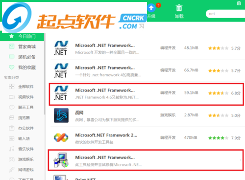 KMSpico安裝失敗提示初始化錯誤怎么辦?1、打開360軟件管家,在搜索欄中輸入:NET,就會出現(xiàn)很多的搜索目標,在下圖所示的紅色方框中任意挑選一種即可!