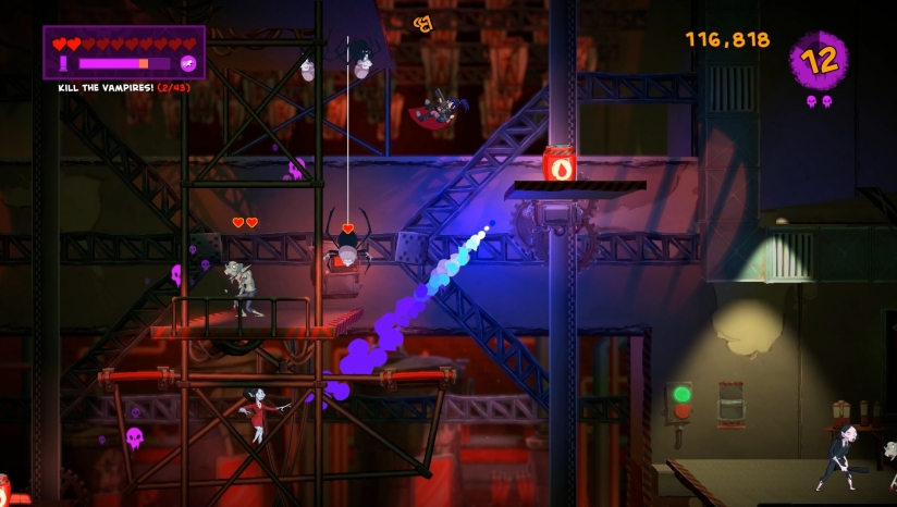 由Screwtape Studios開發(fā)《Damsel》是一個(gè)快節(jié)奏單人平臺動(dòng)作游戲。游戲設(shè)定了一個(gè)黑暗的卡通世界,玩家要扮演政府特工,為拯救世界和吸血鬼戰(zhàn)斗。借助角色的速度和靈活性,通過十幾個(gè)場景,應(yīng)對各種各樣的敵人。游戲提供了不同的模式,玩家可以挑戰(zhàn)高分?jǐn)?shù),沖刺排行榜的頂端。【游戲特點(diǎn)】
