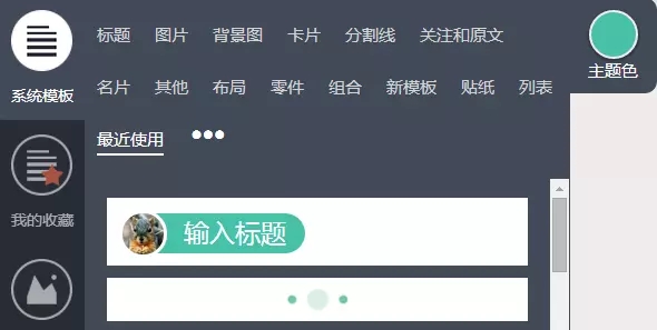 系統(tǒng)模板分為標題、圖片、卡片、分割線、關(guān)注和原文、名片、布局、零件、組合等多個類別,方便用戶按類別進行選擇使用。