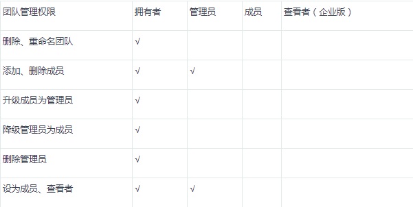 團隊管理權(quán)限說明: