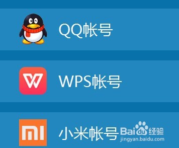 您可以選擇多種登錄方式,小編以QQ帳號為例介紹登錄使用wps云存儲的功能。點擊“QQ帳號”,選項,如圖所示