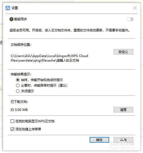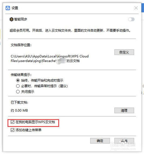 單擊設(shè)置,進入設(shè)置界面,會看到“在我的電腦顯示wps云文檔”的選項,默認是打勾的,我們需要單擊該選項把前面的√取消。