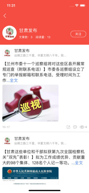 甘肅號(hào)功能區(qū)是甘肅移動(dòng)新媒體信息聚合系統(tǒng)平臺(tái),統(tǒng)籌全省黨政機(jī)關(guān)政務(wù)新媒體以及社會(huì)團(tuán)體、高等院校、主流媒體的官方發(fā)布新媒體資源,為用戶打造一個(gè)“最懂甘肅”的新媒體平臺(tái)。