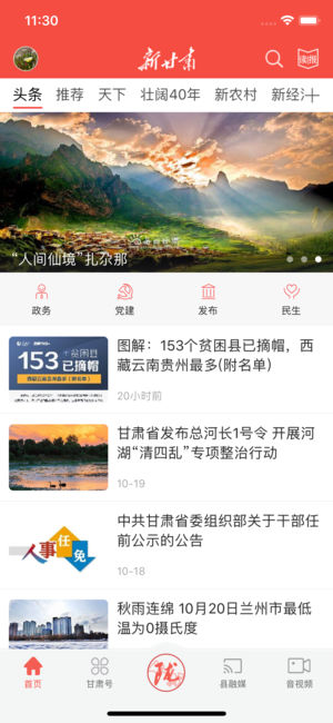 首頁功能區(qū)聚合甘肅新媒體集團(tuán)旗下各大門戶的全平臺(tái)資訊,下設(shè)頭條、推薦、天下、壯闊40年、新視覺、城事兒、新農(nóng)村、新經(jīng)濟(jì)、新觀點(diǎn)、新校園、心旅游、生活家、文化等頻道。