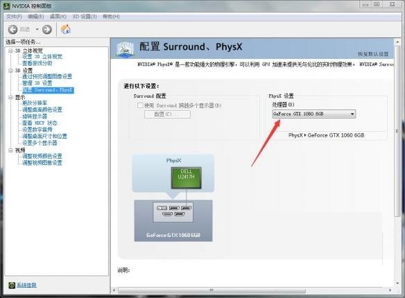 3D設(shè)置》配置surround、physX》 physX設(shè)置 選擇你的顯卡。