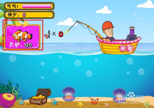 2、進入游戲挑戰(zhàn)界面,左上角有時間控制的哦。游戲開始前會給出一個任務(wù)提示,按照任務(wù)釣到目標魚就可以得分,相反,釣錯的會扣分哦。
