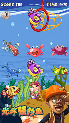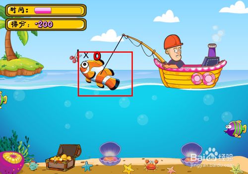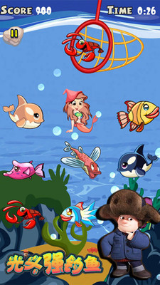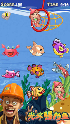 3、水下會有各種魚游過,根據(jù)目標任務(wù),必須要找到目標魚才放下鉤子釣上來才可以得分的哦,否則就要減分。